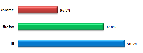 業(yè)福網(wǎng)通過(guò)微軟IE 、火狐firefox 和谷歌chrome 三款瀏覽器分布監(jiān)測(cè)網(wǎng)站的支持情況。其中98.5的企業(yè)網(wǎng)站能夠支持微軟IE ,火狐firefox 的支持率是97.8,谷歌chrome 96.3.