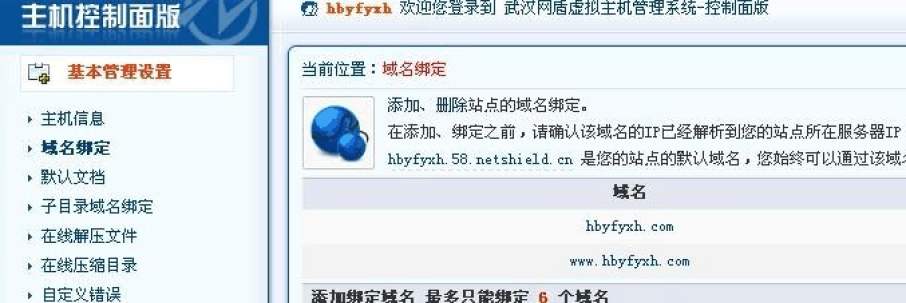 這就是說(shuō)明站點(diǎn)沒(méi)有綁定好域名,請(qǐng)您進(jìn)虛擬主機(jī)控制面板檢查“域名綁定”是否綁定好了,如下圖: