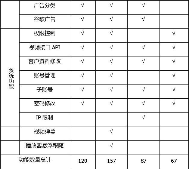 下面經(jīng)過筆者的搜集整理了國內(nèi)幾家視頻云服務(wù)提供商的視頻功能并作一對(duì)比(表3):