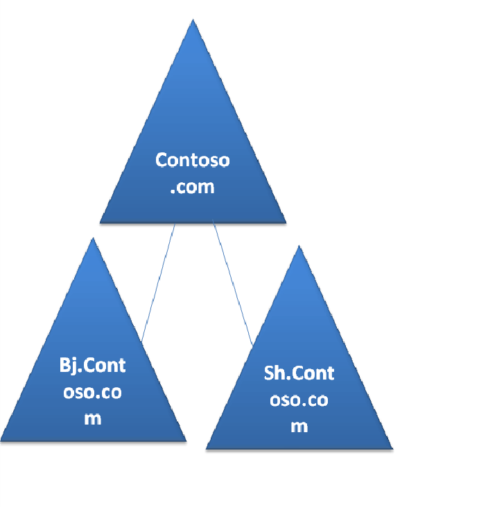 為contoso.com 創(chuàng)建子域,并且在命名的邏輯關系上與contoso.com 是連續(xù)的。而下面的bj.contoso.c om 和sh.contoso.com 相對于contoso.com 來說是子域。反過來,contoso.com 相對于sh.contoso. om 和bj.contoso.com 來說是父域,他們之間是父子關系。
