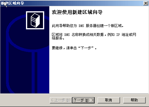 1、首先,新建一個(gè)DNS 的正向區(qū)域向?qū)?,如下圖所示: