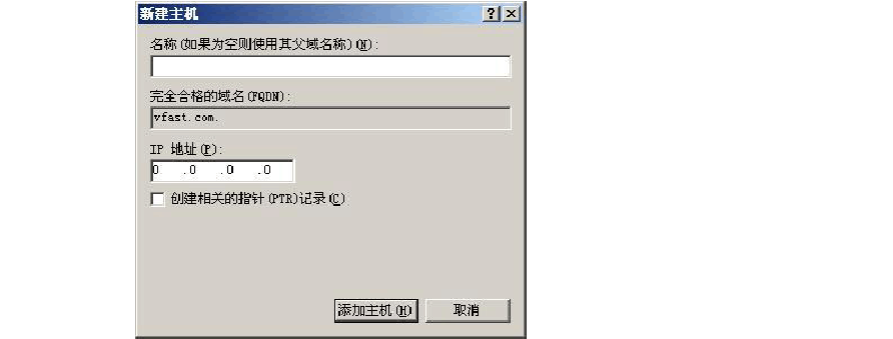 因?yàn)檫x擇的是正向解析,所以還要新建一個(gè)主機(jī),填寫(xiě)合格的域名,IP 地址,這樣就可以實(shí)現(xiàn)DNS 域名解析IP 地址的過(guò)程。