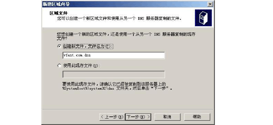 這里需要寫(xiě)入?yún)^(qū)域名稱(chēng),但此區(qū)域名稱(chēng)不是DNS 服務(wù)器名稱(chēng)。單擊“下一步”