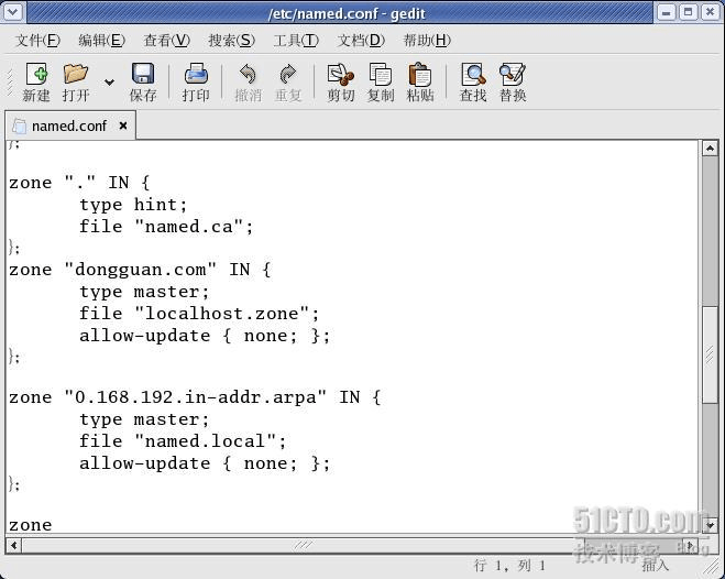 1) 主配置文件:named.conf,路徑為/etc/named.conf.它用來設(shè)置全局參數(shù). 調(diào)配正向解析數(shù)