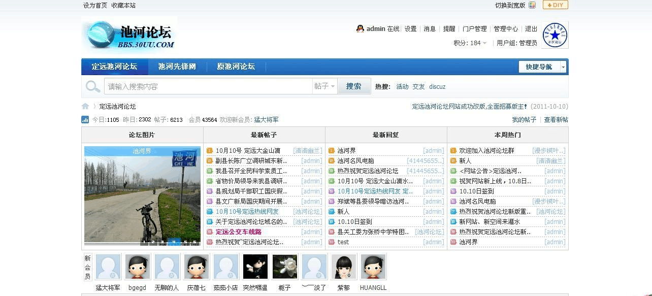 定遠(yuǎn)池河論壇 論壇簡介 定遠(yuǎn)池河論壇是定遠(yuǎn)池河鎮(zhèn)本地最權(quán)威最具人氣的門戶網(wǎng)站。致力于讓定遠(yuǎn)池河百姓通過網(wǎng)絡(luò)更加輕松便捷的生活、娛 樂、交友和工作. 定遠(yuǎn)池河論壇成立于2009年,后經(jīng)多次升級改版,