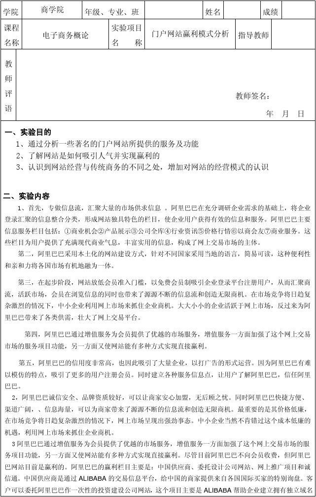 ……………………………………………裝……………………………………訂……………………………………線……………………………………………………………《電子商務概論》實驗報告一第 1 頁