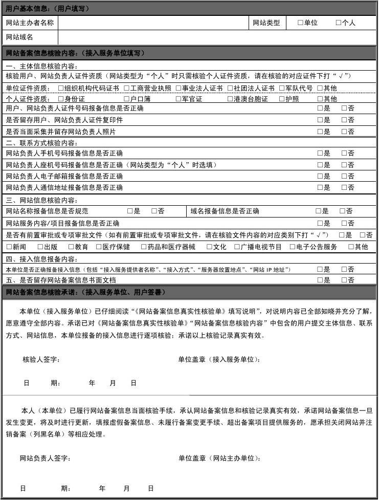 網(wǎng) 站 備 案 信 息 真 實(shí) 性 核 驗(yàn) 單