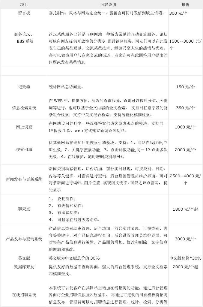 網(wǎng)站制作明細(xì)報(bào)價(jià)表