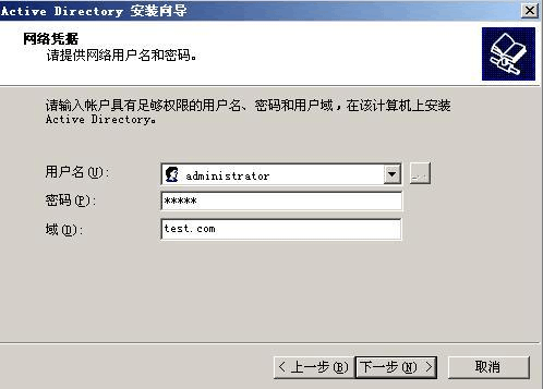 6、 這里輸入你的域管理員的用戶名和密碼,點【下一步】。如圖: