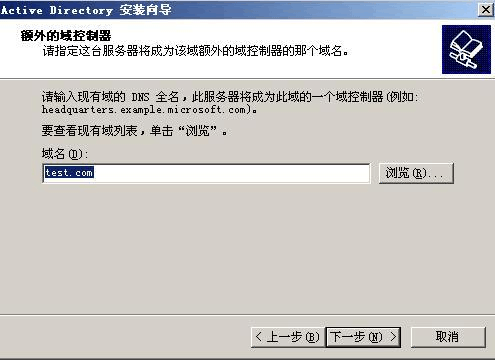DNS 組件。在第一臺域控制安裝好后, 下面開始安裝第二臺域控制器(BDC ),首先將要提升為輔助域控制的計算機的計算機名,IP 地址及DNS 跟據(jù)上面設置好以后, 并加入到現(xiàn)有域,加入域后以域管理員的身份登陸,開始進行安裝第二臺域控制器。