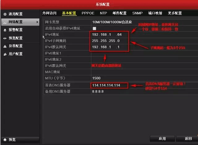 非常重要的一個(gè)參數(shù),很多人沒(méi)有習(xí)慣填寫此處的地址,導(dǎo)致螢石云不在線。推薦寫國(guó)內(nèi)通用的DNS 服務(wù)器地址:114.114.114.114。修改過(guò)參數(shù)后,請(qǐng)隔2分鐘再測(cè)試設(shè)備是否成功上線。
