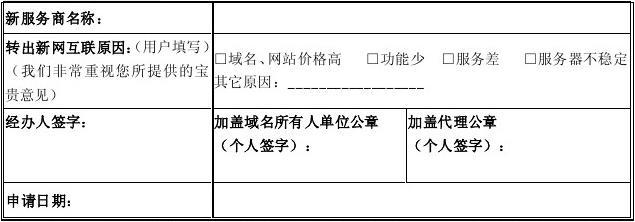 注1:請附上企業(yè)營業(yè)執(zhí)照副本復(fù)印件(個人請附上身份證復(fù)印件);如經(jīng)辦人不是所有人,還需提供經(jīng)辦人的身份證復(fù)印件。如代理是個人則需要提供個人代理身份證復(fù)印件. 新版身份證請?zhí)峁┱疵? 連同本表寄送到北京新網(wǎng)互聯(lián)科技有限公司北京總部-業(yè)務(wù)處理部門,郵寄地址如下: