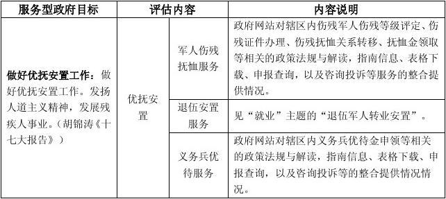 本稿指標(biāo)體系僅針對各地方門戶政府網(wǎng)站(包括省級政府門戶網(wǎng)站、地市級政府門戶網(wǎng)站和區(qū)縣政府門戶網(wǎng)站)設(shè)計(jì)。指標(biāo)體系采用了對重點(diǎn)領(lǐng)域服務(wù)能力評估的思路,設(shè)置了教育、社保、就業(yè)、醫(yī)療、住房、交通、證件辦理、企業(yè)開辦服務(wù)、資質(zhì)認(rèn)定、政府信息公開等10個領(lǐng)域的評估指標(biāo),引導(dǎo)政府網(wǎng)站強(qiáng)化服務(wù)百姓民生需求和企業(yè)開辦、資質(zhì)維護(hù)等辦事能力。本稿指標(biāo)體系包含評估內(nèi)容、內(nèi)容說明及權(quán)重,具體評估細(xì)則將稍后發(fā)布。