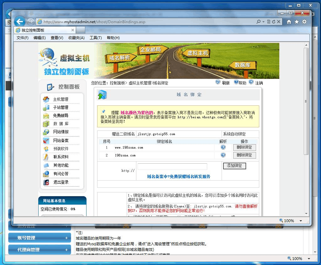點(diǎn)擊主機(jī)域名綁定 如圖