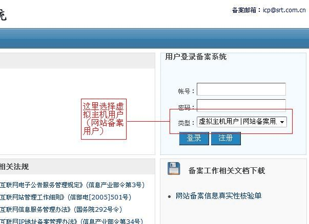 在備案網(wǎng)站首頁輸入用戶名和密碼,驗(yàn)證碼登錄。(注意,一定要選擇“虛擬主機(jī)用戶(網(wǎng)站備案管理用戶)選項(xiàng)” )見下圖:
