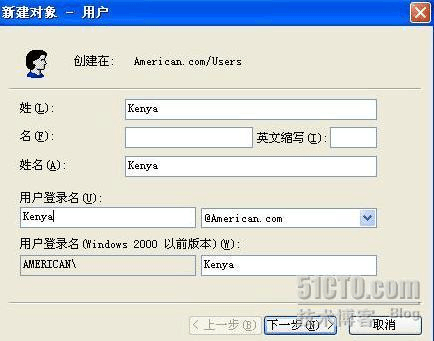 在這里把“隸屬于”改成域,并輸入:“American.com”,并點(diǎn)確定,這是會(huì)出現(xiàn)如下畫面: