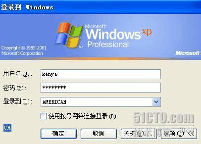下面我們來(lái)用域帳號(hào)來(lái)登錄Kenya 這臺(tái)計(jì)算機(jī)(注意在登錄畫面一定要把登陸到選擇是域而不是本地登錄):