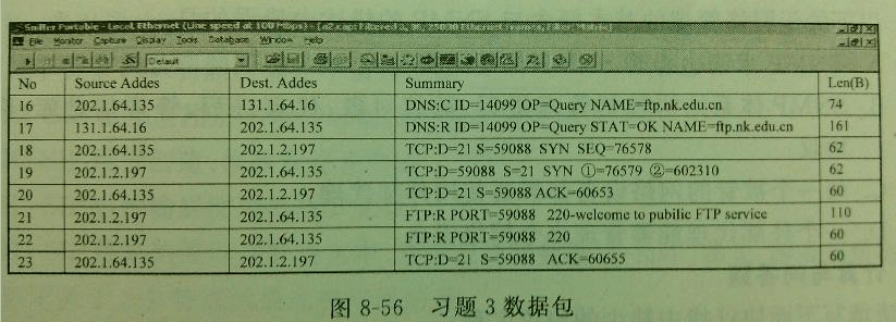 4. 圖8-57 是一臺(tái)主機(jī)用Sniffer 軟件捕獲的數(shù)據(jù)包,請(qǐng)根據(jù)顯示的信息回答下列問(wèn)題。