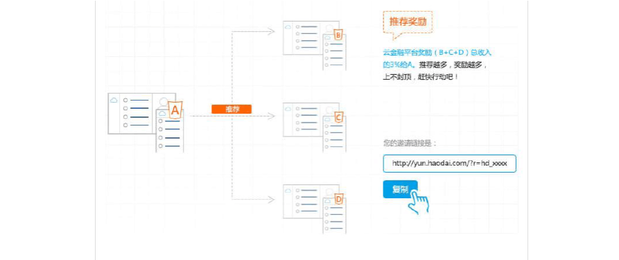 該額外獎勵由好貸云金融平臺提供,并不影響推薦用戶的收益。傭金會在訂單生效后一周進行結(jié)算。具體獎勵機制如下: