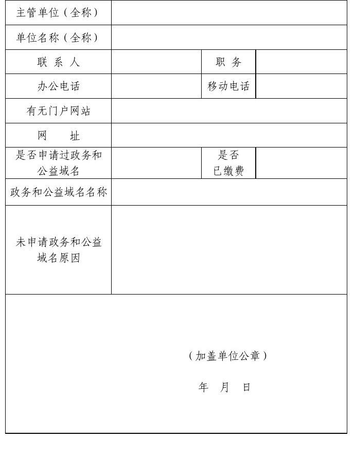 機(jī)關(guān)事業(yè)單位網(wǎng)站中文域名注冊調(diào)查表