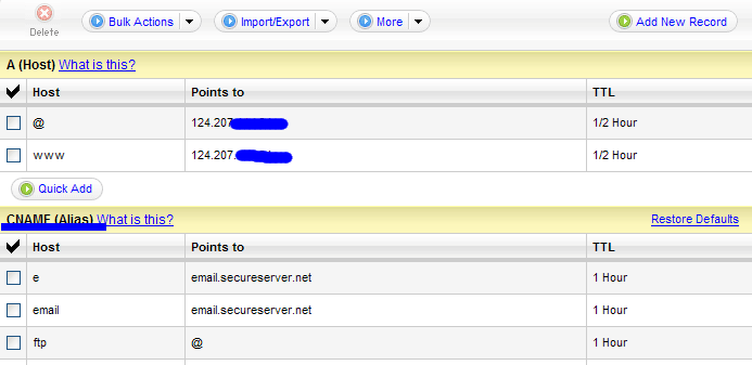 6.在A 記錄的HOST 下添加WWW ,Points to填寫你的空間的IP