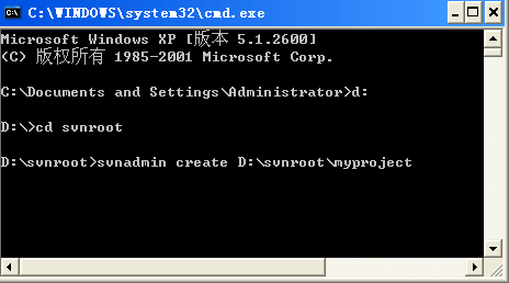 在D:創(chuàng)建svnroot 文件夾,然后通過svn 的svnadmin 命令創(chuàng)建數(shù)據(jù)倉庫。 (注意:D:svnrootmyproject 這個(gè)路徑是區(qū)分大小寫的)
