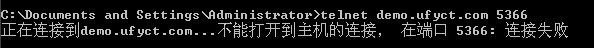 使用telnet 命令測試服務(wù)器端5366端口是否開放。格式: telnet 域名