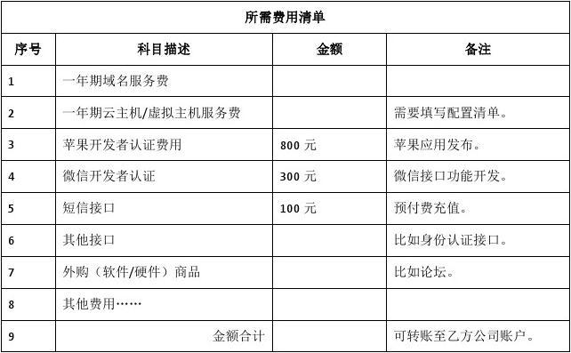 6、外購商品,一般是指本項(xiàng)目中涉及一部分功能不會(huì)自主研發(fā),而采取外購集成的方式,比如在電商系統(tǒng)里面集成一套功能相對(duì)完善的論壇子系統(tǒng),為了降低開發(fā)周期和成本,本公司會(huì)采購“discus ”這類開源論壇商業(yè)授權(quán),官方網(wǎng)站http://www.discuz.net/,其WEB 授權(quán)費(fèi)用為沒項(xiàng)目3.8萬元(可查看官網(wǎng)最新報(bào)價(jià)),如果項(xiàng)目包含移動(dòng)端論壇,則需另外分?jǐn)?萬元接口授權(quán),接口授權(quán)總金額8萬元。