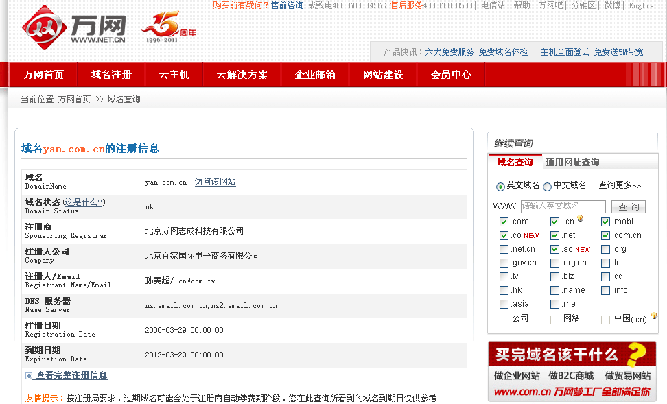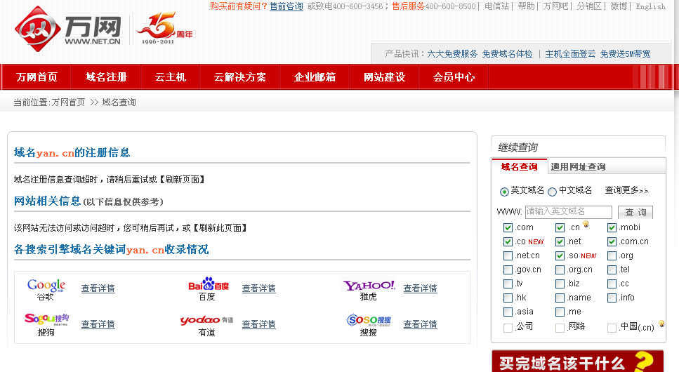 登陸萬網(wǎng)或其他域名注冊網(wǎng)站,注冊一個(gè)一級(jí)域名,查詢相關(guān)域名是否被注冊。 2