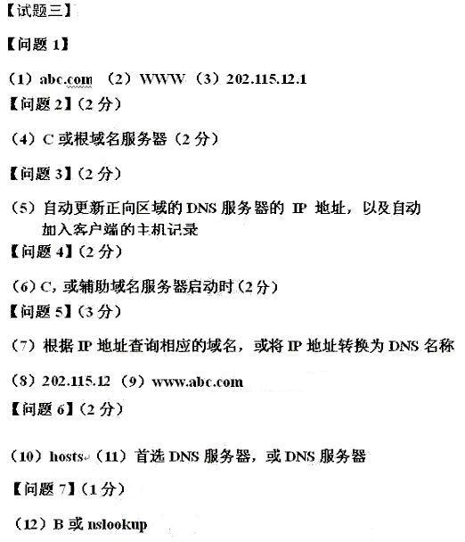 該題以希賽公司某部門網(wǎng)絡(luò)拓?fù)浣Y(jié)構(gòu)為基礎(chǔ),并安裝IIS ,建立域名為www.csai.cn 的web 站點(diǎn)。題中首先考查了Windows2003平臺下DNS 服務(wù)器的基本配置,難度比較低。接著向理論方面深化,要求考生了解輔助域名服務(wù)器、轉(zhuǎn)發(fā)域名服務(wù)器、根域名服務(wù)器、子域