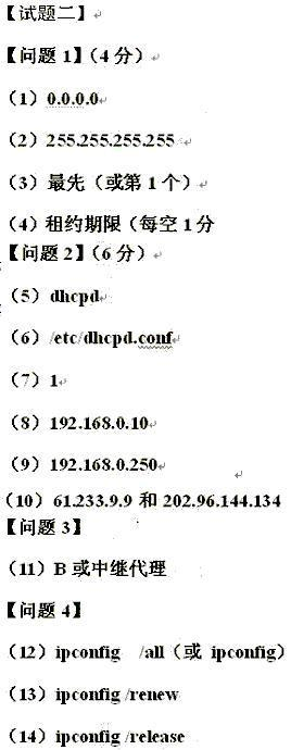試題二 、動態(tài)主機(jī)配置協(xié)議DHCP