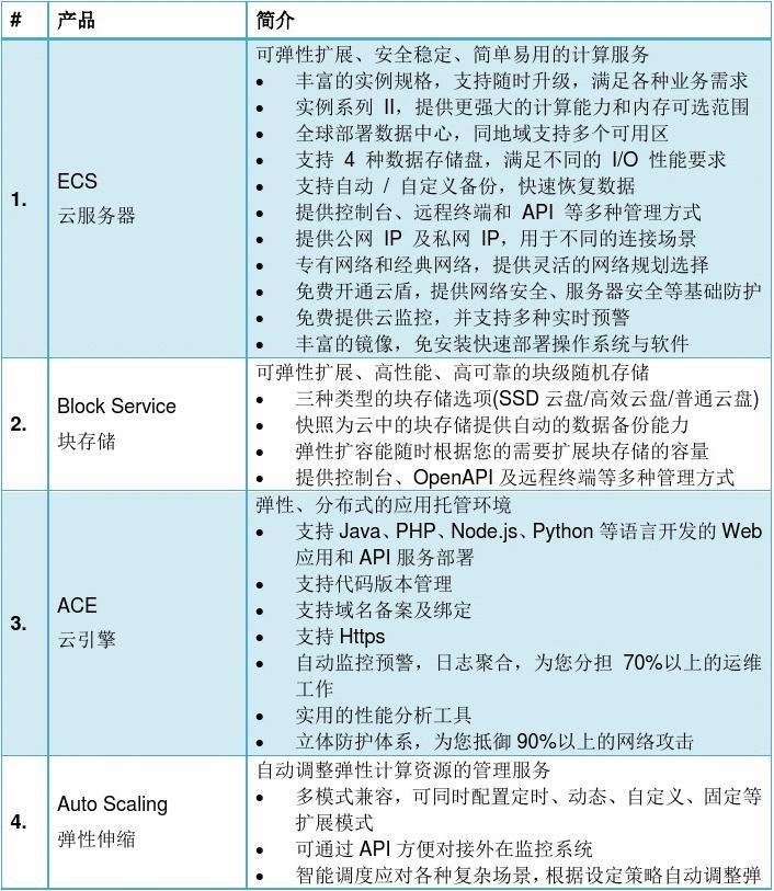 阿里云產(chǎn)品匯總2016/1/17一、彈性計算 ,二、數(shù)據(jù)庫 ,三、存儲與CDN ,四、網(wǎng)絡