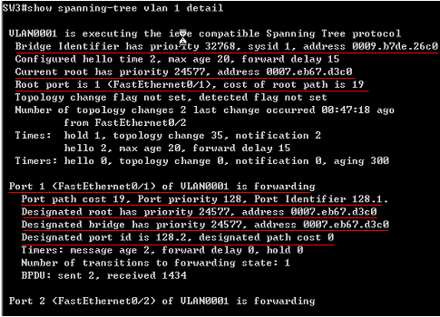 5、請簡要寫出show spanning-tree vlan 1 detail命令顯示所對應(yīng)的含義