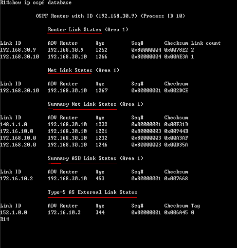 5、請解釋以下圖示的內(nèi)容?LSA 有哪些?每種LSA 的特點有哪些?路由表有什么特點?