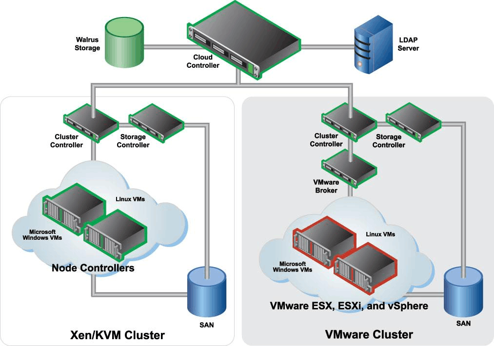 Eucalyptus 是一個(gè)與Amazon EC2兼容的IaaS 系統(tǒng)。Eucalyptus 包括云控制器(CLC )、