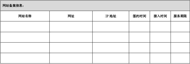 文檔編號(hào):_____________________________________用戶網(wǎng)站備案信息登記表接入商:鄭州紫田網(wǎng)絡(luò)科技有限公司 備案咨詢電話:13373775151 0371-65