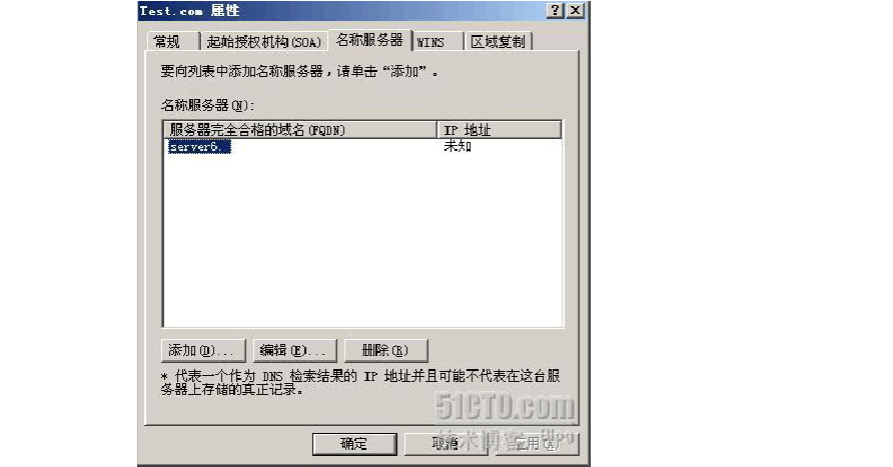 如下圖所示,我們發(fā)現(xiàn)NS 記錄不正確,因?yàn)镾erver6. 并不是一個(gè)可以解析的完全合格域名,這樣會(huì)導(dǎo)致DNS 的客戶機(jī)無(wú)法得知這個(gè)區(qū)域的解析服務(wù)器到底是誰(shuí)。因此我們要對(duì)NS 記錄進(jìn)行修改,只要你讓修改后的完全合格域名能解析為192.168.11.1,這個(gè)修改就是成立的。