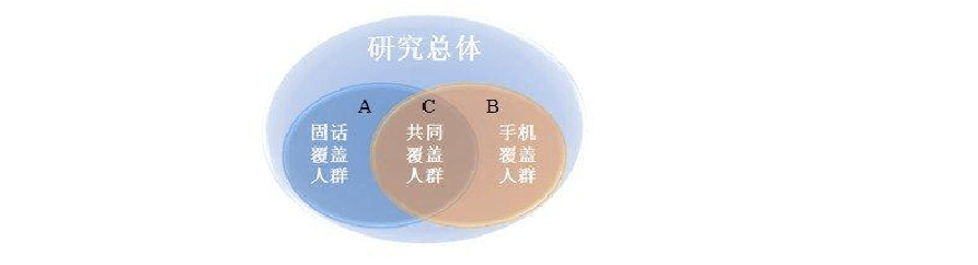 子總體C :手機和住宅固話共同覆蓋人群【住宅固話覆蓋人群和手機覆蓋人群有重合,重合處為子總體C 】,C=A∩B 。
