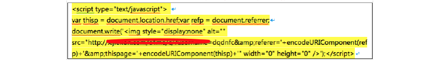 ,判罰案例四:推廣賬戶下多個站點存在竊取訪客行為,未清理完全 判罰推廣用戶表示已清理完訪客記錄平臺的代碼,但仍然被判黑 經(jīng)過我們檢查,發(fā)現(xiàn)判罰的用戶僅清理了www 域下的惡意代碼,而他賬戶下還推廣了其它站點下的url ,源碼中存在這樣一段代碼: