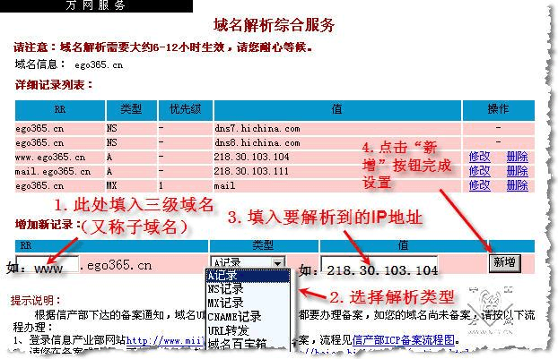 溫情提醒:1、企業(yè)郵箱的解析需要添加2條域名解析記錄