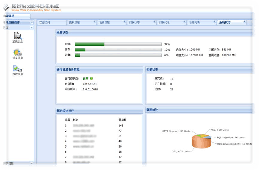 銥迅Web 漏洞掃描系統(tǒng)(簡(jiǎn)稱:銥迅Web 漏掃,英文:Yxlink Web Vul Scanner), 是檢查Web 應(yīng)用存在漏洞的專業(yè)掃描系統(tǒng),是目前唯一的支持IP 地址段反查DNS 域名的漏洞掃描器。支持檢測(cè)網(wǎng)站中如SQL 注入、跨站腳本、木馬上傳、代碼執(zhí)行、遠(yuǎn)程本地包含、信息泄露等漏洞。