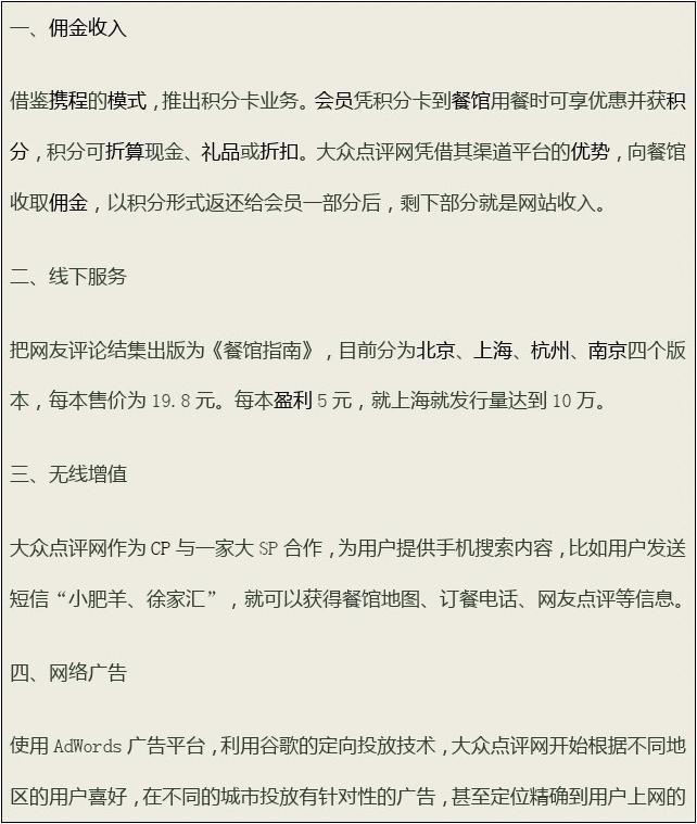 在百度百科上抓了一段點(diǎn)評(píng)網(wǎng)的盈利模式分析