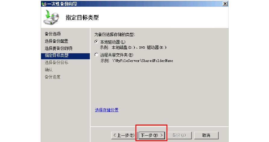 由于我是虛擬機,本地就一個磁盤一個分區(qū)所以點擊下一步會報錯,我就保存到遠程共享去了