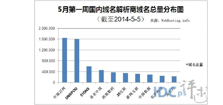 (圖1)各域名解析服務(wù)商域名總量分布圖(截至2014-5-5)