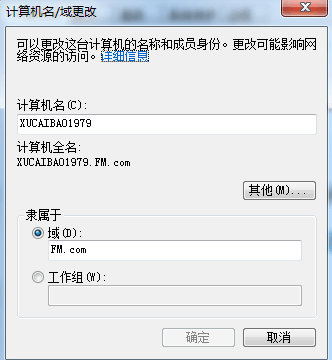 設置完網絡以后,在“我的電腦”上擊右鍵,選“屬性”,點“計算機名”。在這里把“隸屬于”改成域,并輸入:“FM.com ”,并點確定,
