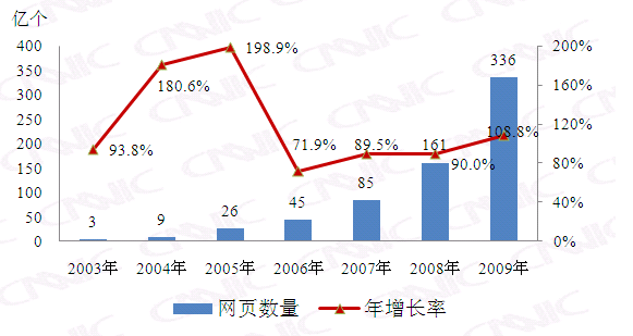 圖 6 2003-2009年中國(guó)網(wǎng)頁(yè)規(guī)模變化