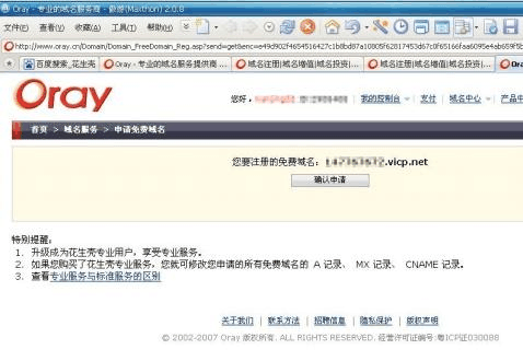 VICP.NET 完成后點(diǎn)擊查詢域名