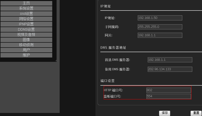 1.同樣的方法,要修改攝像機(jī)的HTTP 端口和數(shù)據(jù)端口: