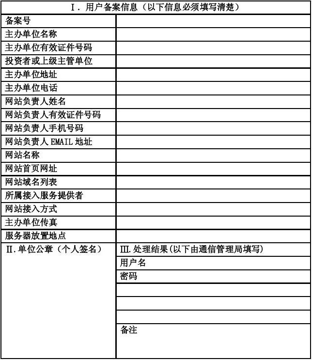 廣東省ICP 備案用戶找回用戶名、密碼申請表