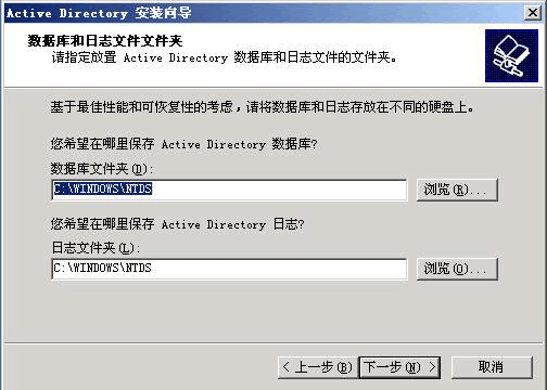 在這里要指定AD 數(shù)據(jù)庫(kù)和日志的存放位置,如果不是C 盤(pán)的空間有問(wèn)題的話,建議采用默認(rèn)。